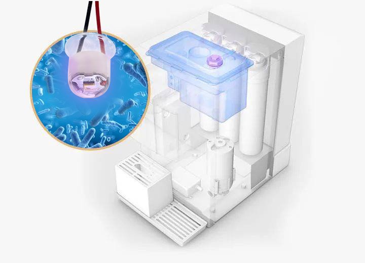 UVC LED water sterilization technology can be divided into static water sterilization and dynamic water sterilization according to different scenarios. Static water bacteriostatic module is mainly used for water purification and sterilization of water tank. It is generally installed in the water storage tank of water dispenser, humidifier, coffee machine and other equipment. Purple light circularly irradiates the water body within a set time to achieve the effect of inhibiting bacterial breeding.