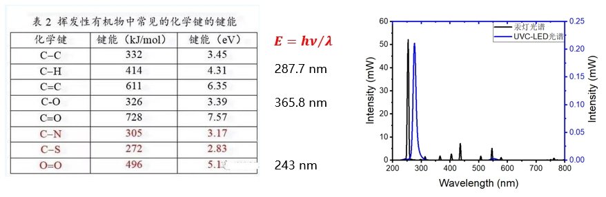 Theoretically, the chemical bond can be broken when the photon energy is higher than the bond energy. Therefore, ultraviolet rays with a wavelength shorter than 243 nm can stimulate oxygen in air or water to produce ozone. UVC LEDs with a wavelength higher than 243 nm do not produce ozone.