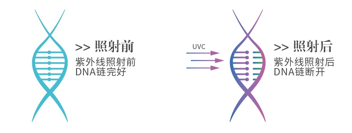 Scientists have found through a large number of experiments that the DNA/RNA in the bacterial virus body will absorb part of the UVC band ultraviolet light, causing growth cell death and/or regenerative cell death, to achieve the effect of sterilization.