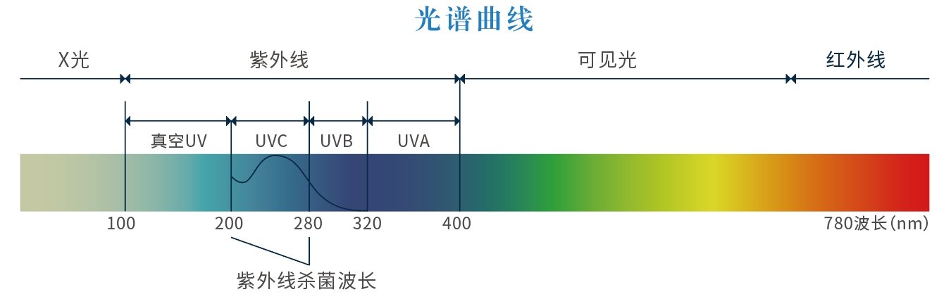 UVC wavelength 200 ~ 275nm, also known as short-wave sterilization ultraviolet. It has the weakest penetration ability and cannot penetrate most transparent glass and plastic. Sunlight contains shortwave ultraviolet rays that are almost completely absorbed by the ozone layer.