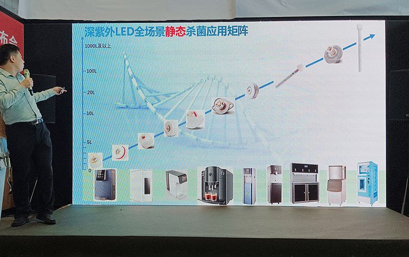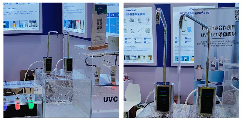 This water exhibition Qingdao fluorescent with a new UVC LED sterilization faucet appeared in this exhibition and simulated faucet sterilization operation in the exhibition. The product is mainly used for the end sterilization to ensure the safety of drinking water inlet. The sterilization module and ultraviolet sensor are added in the main body of the product to achieve the combination of intelligent sterilization and information feedback, reducing maintenance costs and real-time sterilization monitoring.
