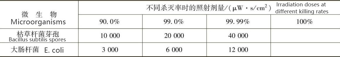 Ultraviolet rays can kill bacteria, fungi, viruses, etc. The bactericidal dose is the product of the irradiation intensity and the irradiation time. A certain amount of microorganisms are made into a water suspension with a water depth of 2cm. After irradiating with ultraviolet rays for different periods of time, the bactericidal dose of ultraviolet rays for different organisms is calculated. The lethal dose of ultraviolet rays to microorganisms in water