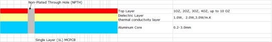 The metal substrate helps to conduct heat and effectively dissipate heat. Studies have shown that metal substrates can improve thermal conductivity, up to 10 times higher than standard FR4PCBs. Since the laminated structure of the metal substrate is different from that of the PCB, see the laminated structure comparison diagram below.